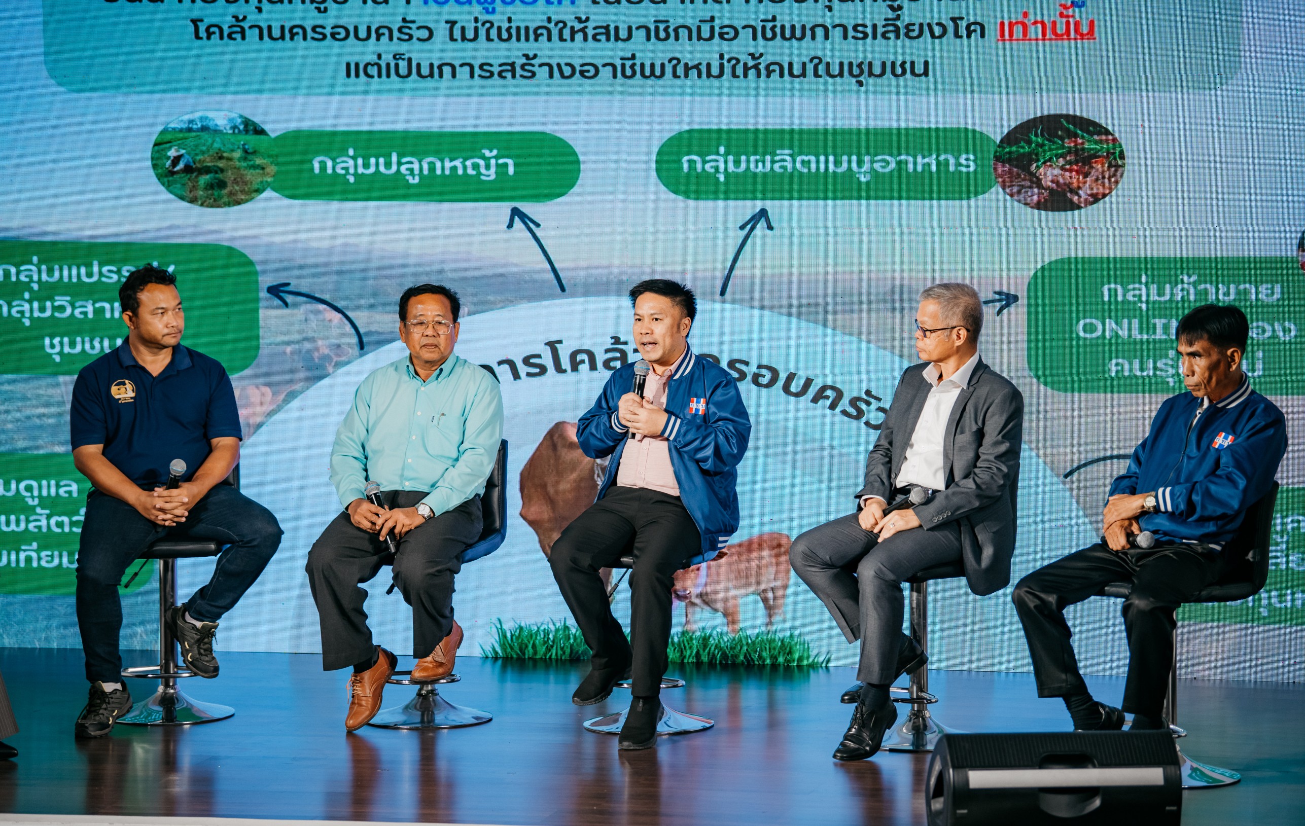 เมื่อวันที่ 31 มีนาคม 2566 เวลา 16.00 น. ณ ห้องประชุมวิโรจน์ อิ่มพิทักษ์ อาคารศูนย์เรียนรวม 4 มหาวิทยาลัยเกษตรศาสตร์ บางเขน สำนักงานกองทุนหมู่บ้านและชุมชนเมือง ได้จัดงานแถลงข่าวโครงการ “โคล้านครอบครัว” เพื่อประกาศความร่วมมือกับทุกภาคส่วนที่พร้อมเดินหน้าทำให้โครงการสู่ความสำเร็จให้เกษตรกรมีรายได้อย่างยั่งยืนมั่นคง โดยมีนักวิชาการมาร่วมเสวนาภายใต้หัวข้อ “ชี้ช่องรวย ด้วยโครงการโคล้านครอบครัว” โดยเป็นผู้เชี่ยวชาญด้านการเลี้ยงโค ตั้งแต่ต้น-กลาง-ปลายน้ำ อาทิ รศ.ดร.รังสรรค์ พาลพ่าย สาขาวิชาเทคโนโลยีชีวภาพสำนักวิชาเทคโนโลยีการเกษตรมหาวิทยาลัยเทคโนโลยีสุรนารี อาจารย์ นายสัตวแพทย์ ดร.ธนพล หนองบัว รองคณบดีฝ่ายนวัตกรรมวิจัย เเละบริการวิชาการ คณะสัตวแพทย์ศาสตร์ มหาวิทยาลัยมหาสารคาม ส่งต่อความรู้เรื่องกระบวนการเลี้ยงโคอย่างมีคุณภาพ การเตรียมความพร้อมในการเลี้ยงเพื่อให้สามารถทำกำไรสูงสุด พร้อมกับรับฟังประสบการณ์จากประธานเครือข่ายกองทุนหมู่บ้านและชุมชนเมือง จังหวัดนครพนม นายธนูศร ปัญญาสาร และ คุณประสาท บุญญานันท์ เจ้าของบังอรฟาร์ม ประธานกลุ่มวิสาหกิจวากิวโคราช อำเภอสูงเนิน จังหวัดนครราชสีมา ตัวแทนเกษตรกรผู้เชี่ยวชาญด้านการเลี้ยงโค และ เชฟชุมพล แจ้งไพร ผู้แทนฝั่งภาคการค้า ที่มาร่วมชี้ให้เห็นช่องทางตลาดเพื่อให้เกษตรกรสามารถเลี้ยงโคให้ได้มาตรฐาน ตอบโจทย์ความต้องการของตลาดโลกได้